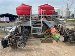 2008 Cross Slot No-Till Seed Drill/Air Seeder ~ Coulter/inverted T tyne hybrid opener ~ Tungsten blade either side of coulter for seed & fertiliser separation ~ 9m sowing width ~ 310mm row spacing ~ 4.6m transport width ~ ADF (Auto Down Force) system maintains even downforce pressure across all openers ~ King pin on openers ~ Solid frame, 200mm x 200mm x 10mm RHS toolbar ~ Blades available for liquid system ~ Devloo rotary mud scrapers ~ 2500L seed and fertiliser bins ~ Weigh scales on both bins ~ Agtron blocked head monitor on seed box ~ 2 x 70L bait bins, (product broadcast behind seeder or directed into seed tubes) ~