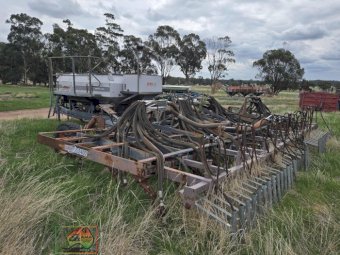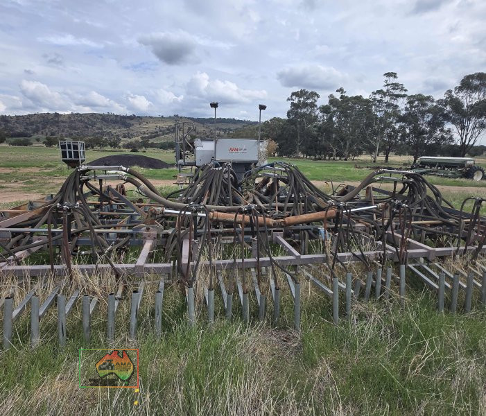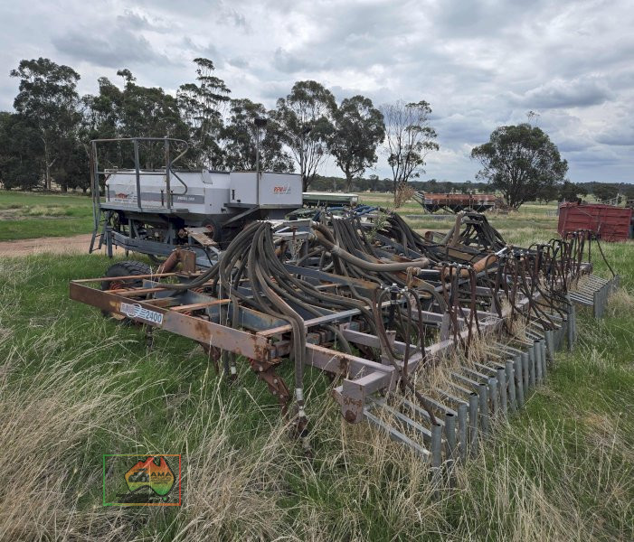 Ryan RFM-2400 4-Box Airseeder ~ Solid H/duty 24ft bar with 7" spacing ~ High tension double spring direct drill (trash clearance) Tynes ~ Knife edge points with double shot boots ~ 3 main boxes for deep-band sowing (Seed, DAP & Urea) ~ 4th box for small seeds delivered to air-flow drop-tubes, (purpose built for sowing Poppies, should suit Canola) ~ Larger fan for increased air-flow ~ Will fold-up to fit through 12ft gate ~ This is a very H/duty system, built by Ryan Farm Machinery (RFM) the early pioneers of Trash Working Direct Drill Technologies ~ You will need 180Hp+ Tractor ~ The 1st to see & understand it's capabilities will purchase.