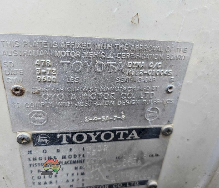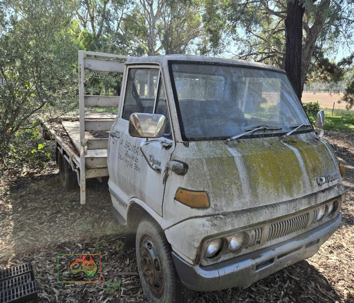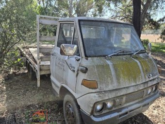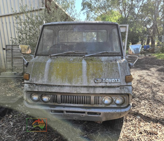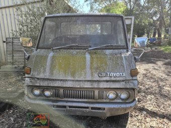 1972 Toyota Dyna Truck ~ 1 Owner ~ Original condition ~ 2 Ltr, 4cyl Petrol ~ 10ft x 7ft Steel tray with dropsides ~ Towbar ~ Was running & diving OK when parked (several years ago) ~ Speedo shows 04,999 miles ~ Original, good quality interior ~ Very straight truck, no dents, only some surface rust ~ Ideal to restore & use.