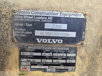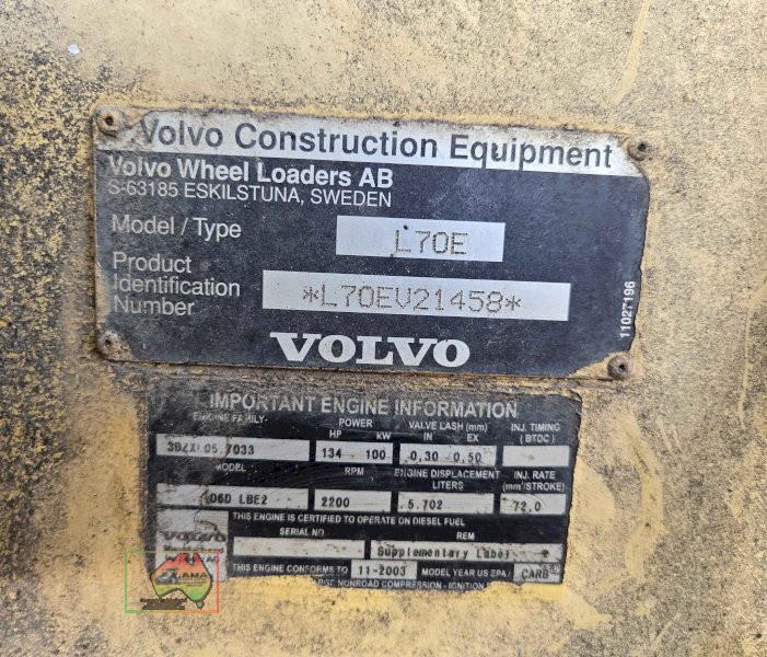 2003 Volvo L70F Loader (Parts) ~ Quick hitch loader ~ Tyres 20.5-R25 near new 90% ~ Faulty gearbox ~ Volvo Penta diesel engine, starts & runs (has knock in motor) ~ Approx. 19,000 Hrs ~ 134Hp ~ No attachments included.