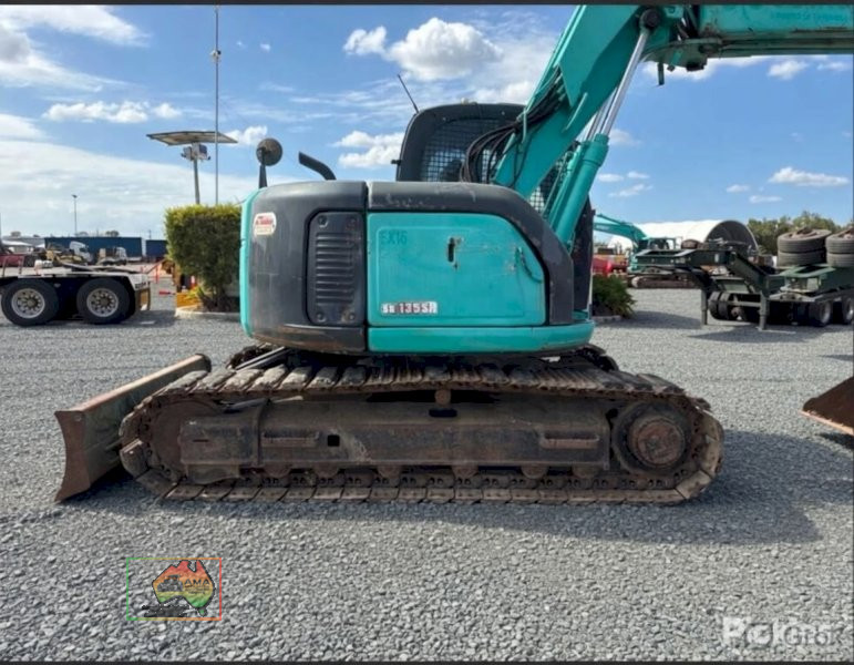 2004 Kobelco SK135SR ~ 13.5 Ton excavator ~ 8,684hrs ~ Starts and runs well ~ SWL - 1.4T ~ Air Conditioned Cabin ~ Parallel Offset Boom ~ 1500mm bucket, 700mm bucket & Ripper ~ Quick hitch ~ Back blade ~ Good operating condition..