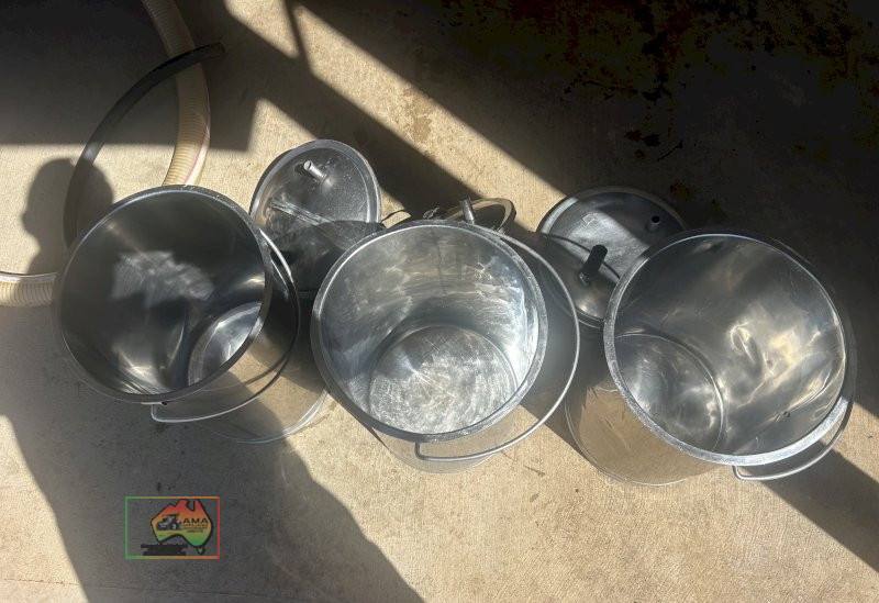 3 x stainless steel dairy test buckets ~ complete with lids ~ need hoses and seals
