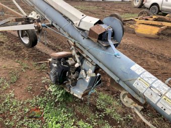 8" x 50' Grainline auger ~ Vanguard 23hp v/twin motor, starts & runs (see Video) ~ new pulley and belts ~ Some repair patches in barrel