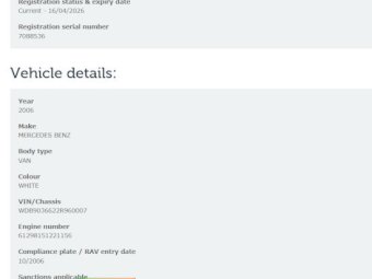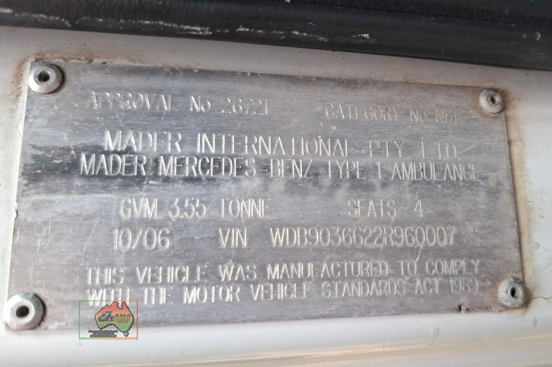 2006 Mercedes Sprinter (Ex Ambulance) Campervan ~ Low roof, SWB model ~ (VIN: WDB9036622R960007) ~ 2.7L Turbo Diesel ~ Automatic ~ 316,685 km ~ Vic Rego until 16/04/2026 (No RWC) ~ Darche awning ~ Solar powered ~ 65L fridge + freezer ~ 90L water tank ~ Portable gas stove ~ Outdoor shower (with hot water unit)