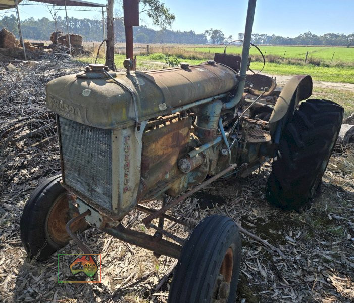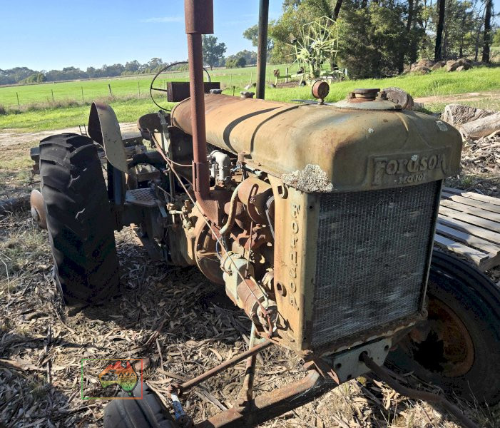 Fordson E27n Tractor ~ 4.4 Ltr, 4-cyl Kero/Petrol ~ 45 Hp ~ Crank or electric start ~ 3pl, PTO ~ Tractor appears to be complete & ready for restoration ~ Engine is free & turns over easily ~ Good oil & no water in sump ~Tyres will need replacing.