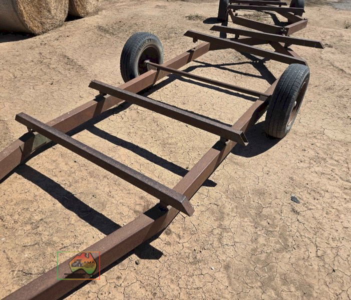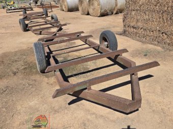 4x Hay trailers and 3PL fork set ~ 4 x low loader hay trailers (carry 2 round bales each) + one on rear forks ~ need some welding work ~ wont take much to clean up