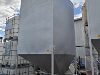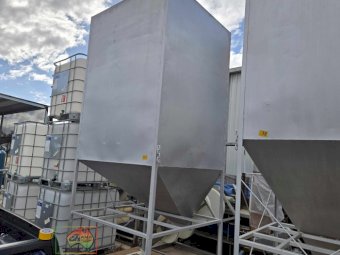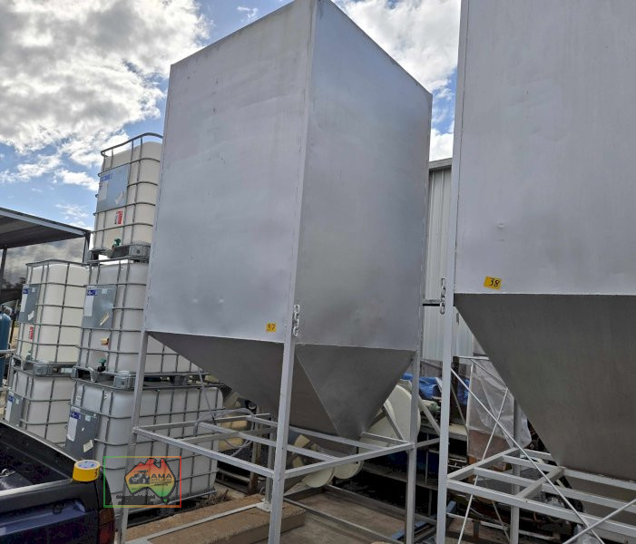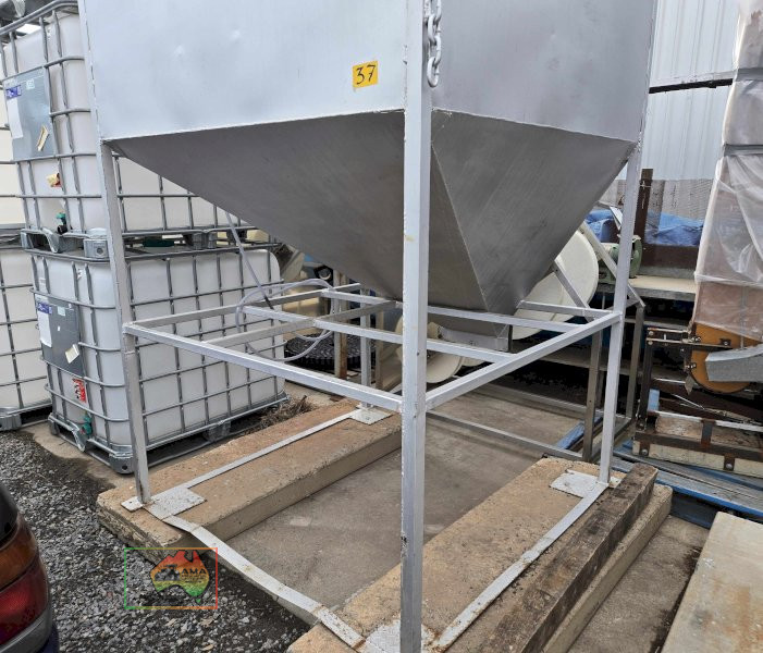 Large jacky bin ~ steel stand with concrete weight base ~ can be made air tight for fumigation.
