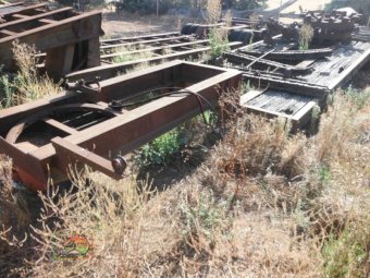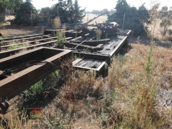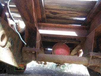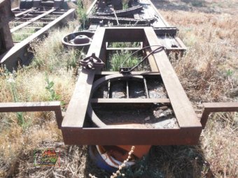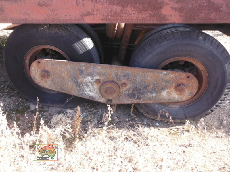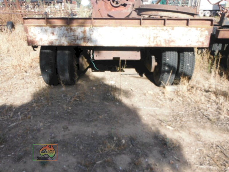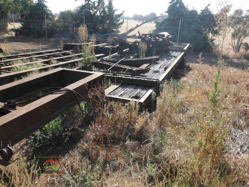 Old Low Loader as per photos. Suit off road/ farm use. 8 ft wide 35ft 8in overall long. Items on top of trailer not included. Selling as is