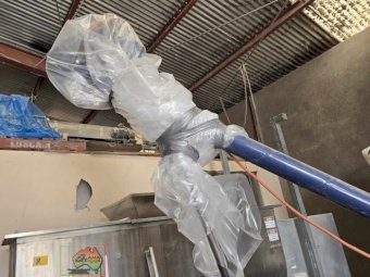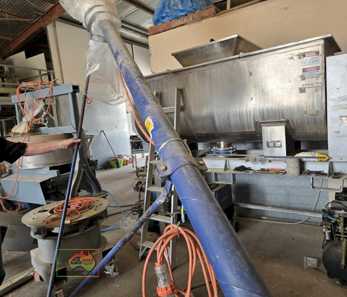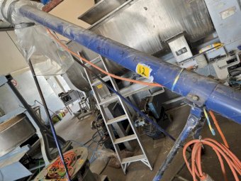4m x 4" pencil auger with hopper ~ 3 phase ~ stainless steel food grade hopper ~ on wheels ~ tripod and frame