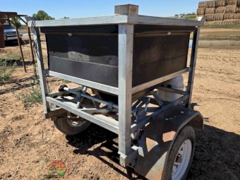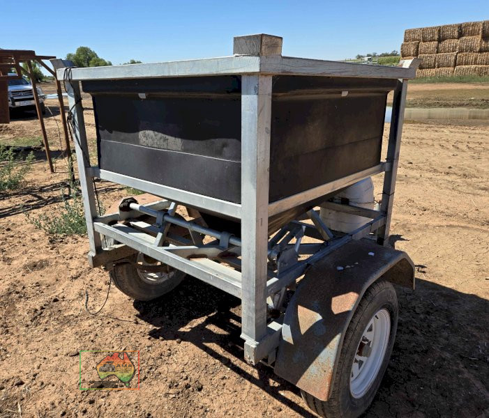 Trailing grain feeder ~ approx. 500kg capacity ~ cover tarp included ~ jockey wheel ~ remote control 12V actuator